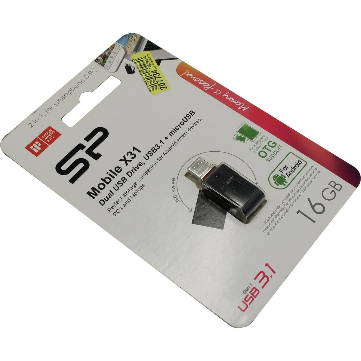 USB 3.1 - microUSB Флеш-накопитель SP Mobile X31 16 Гб черный