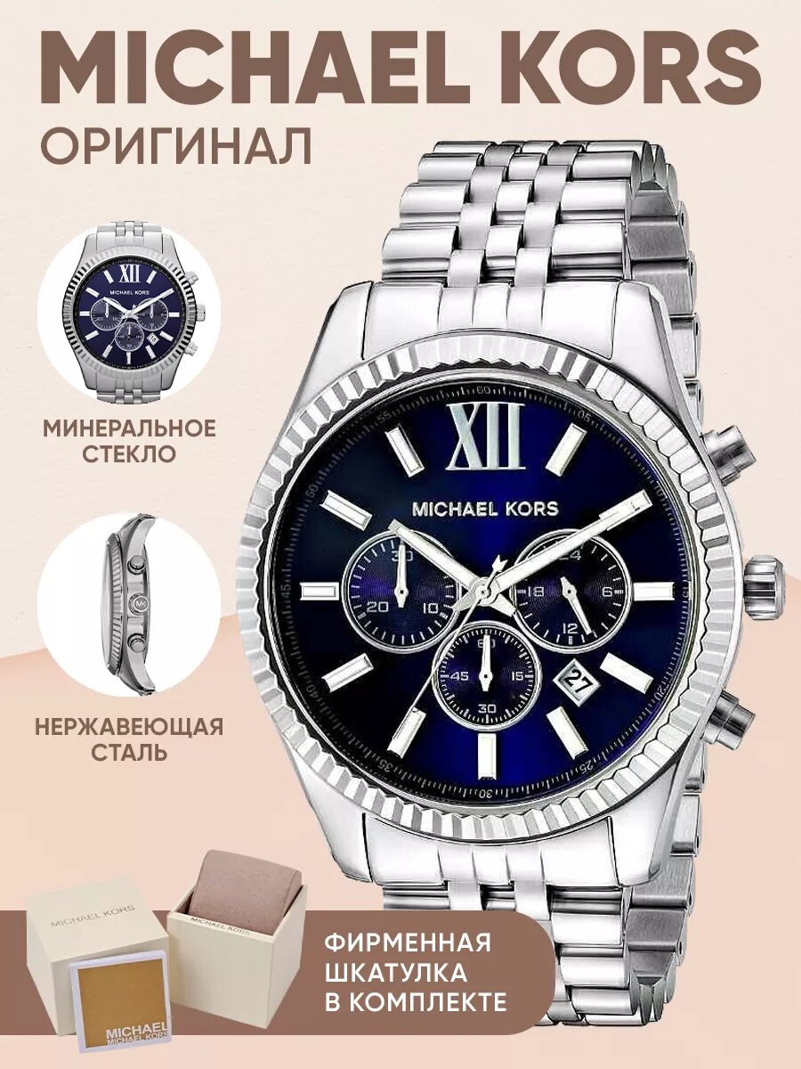 СохранитьЧасы наручные Michael Kors серебристые синий циферблат стальные интересное: