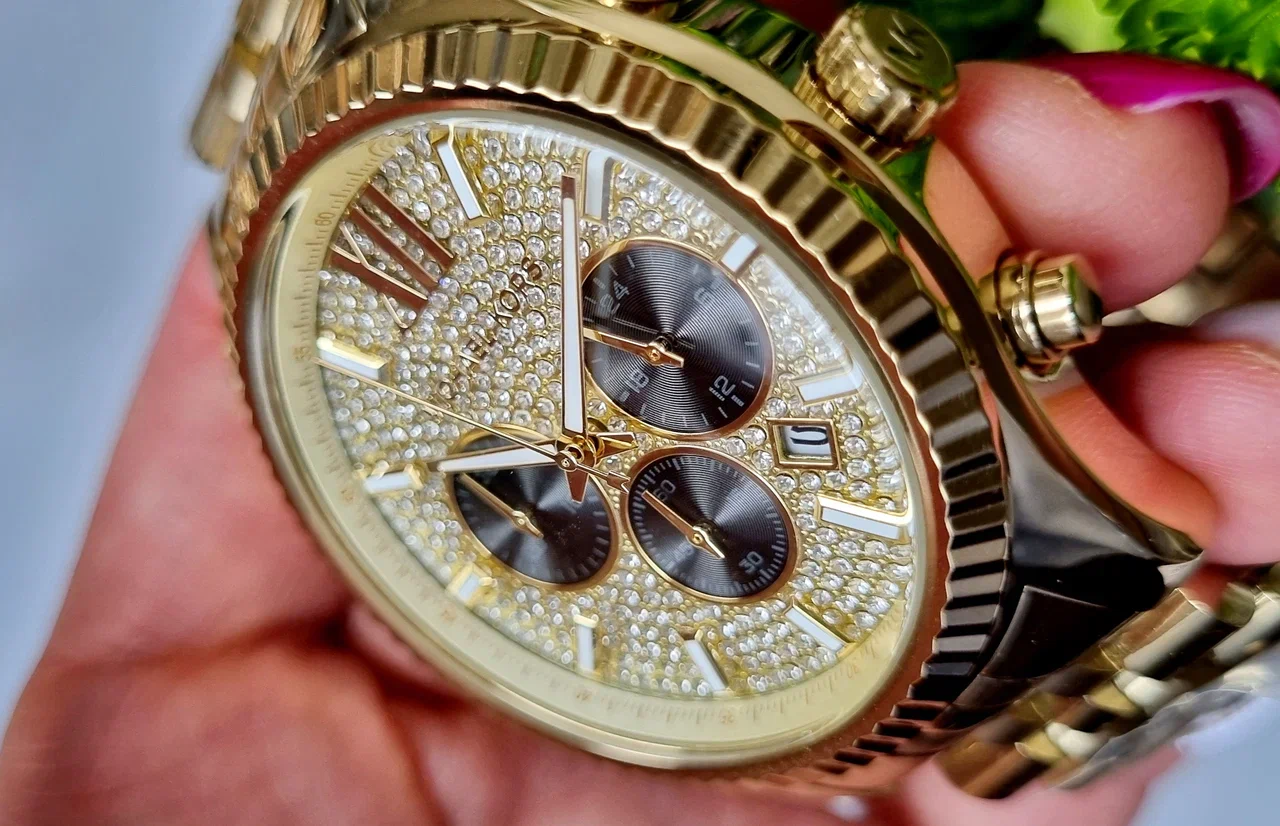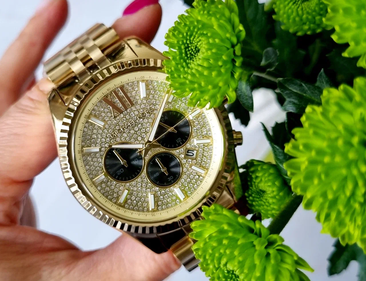Часы наручные мужские Michael Kors со стразами Lexington золотые стальные