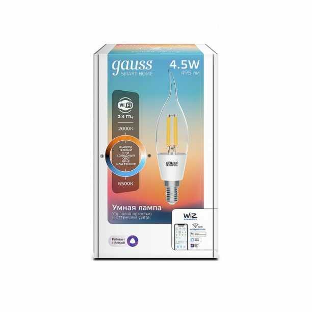 Умная лампа Wi-Fi Gauss Smart Light ССТ DIM E14 CF35 4,5 Вт 2700-6500K, диммируемая с изменением температуры, управление голосом/смартфоном