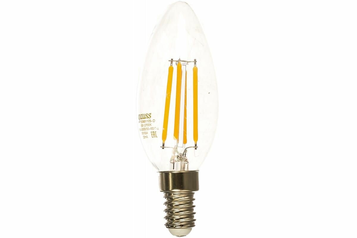 Лампа Gauss Filament Свеча 5W 420lm 2700К Е14 диммируемая LED 1/10/50