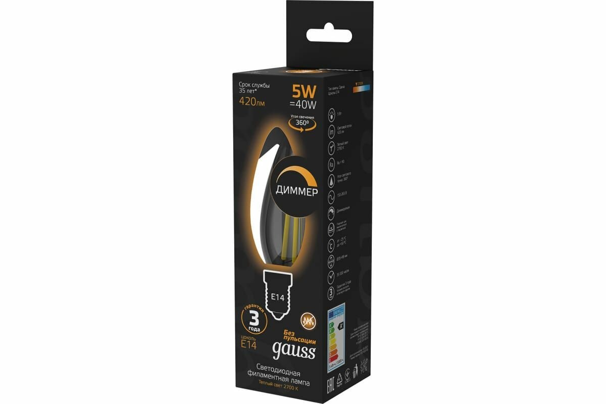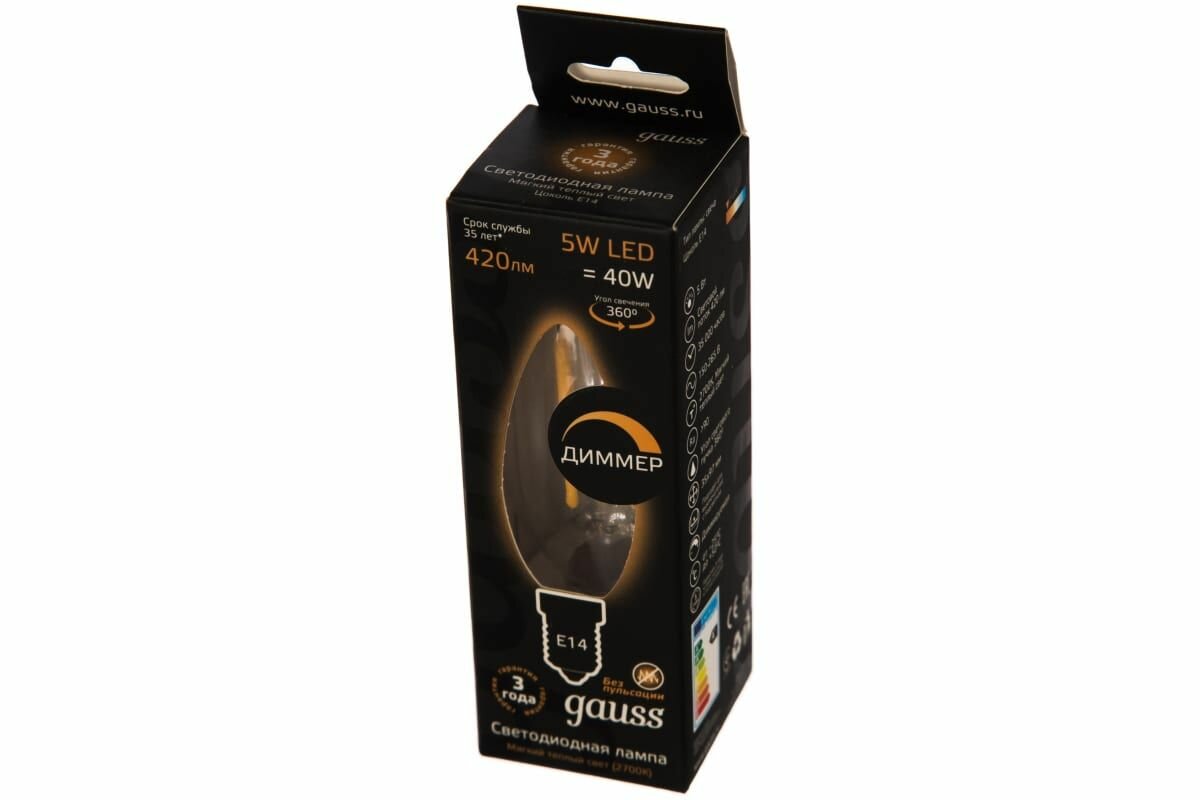 Лампа светодиодная Gauss 103801105-D Filament C37 E14 5W 2700К диммируемая