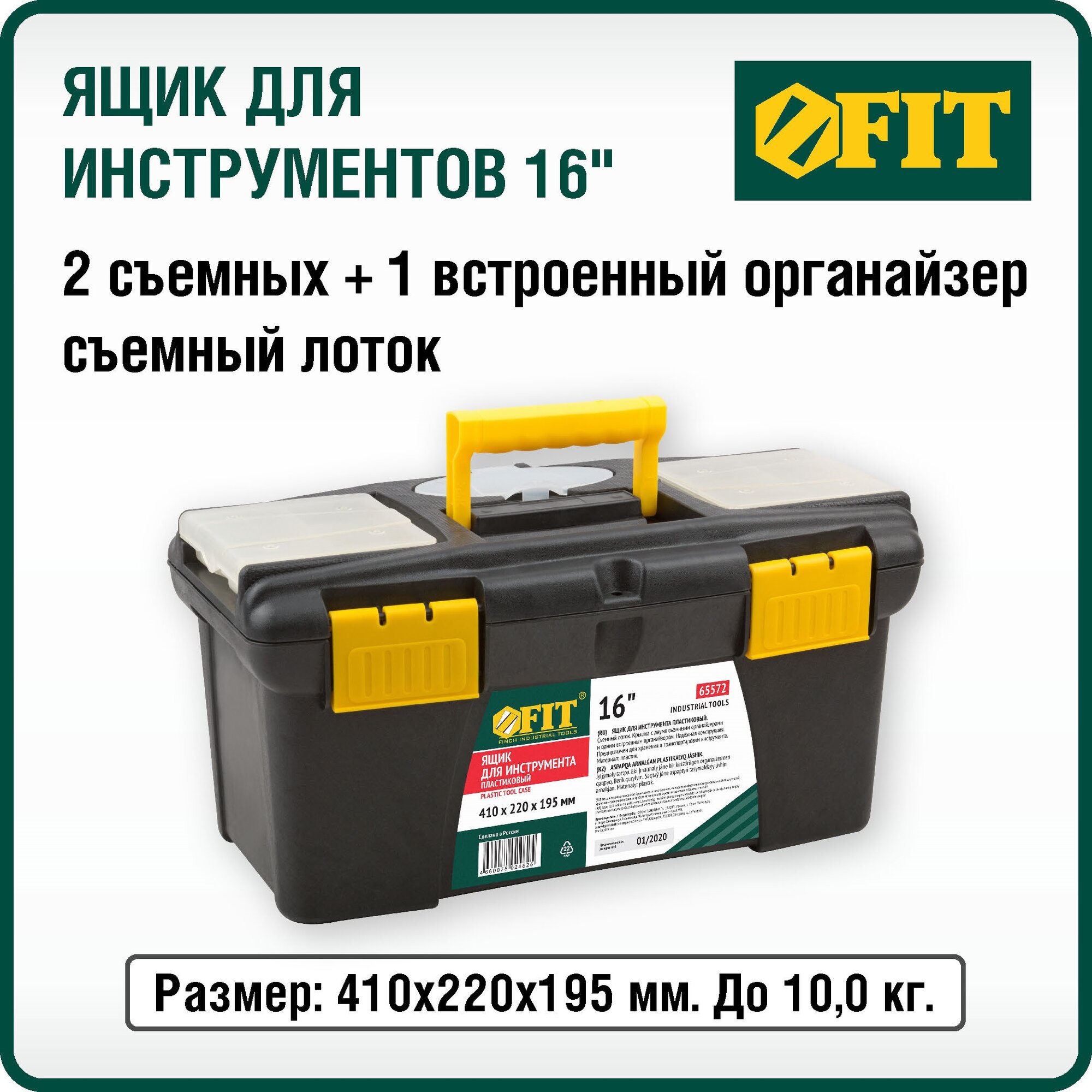Купить Ящик для инструментов, ящик для инструмента с органайзером FIT 65572 41 х 22 х 19,5 см 16"