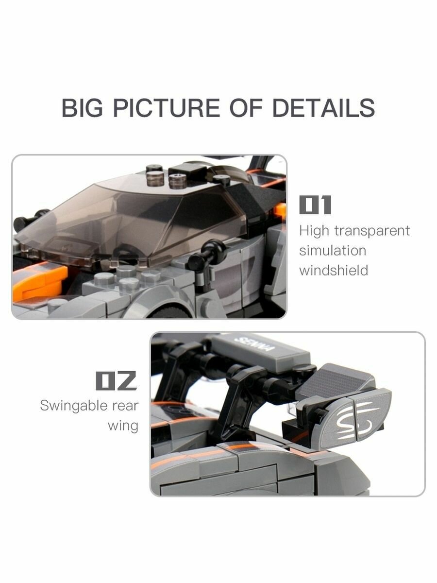 Купить Конструктор Mould King 27008 Автомобиль McLaren Senna, 352 дет., серый