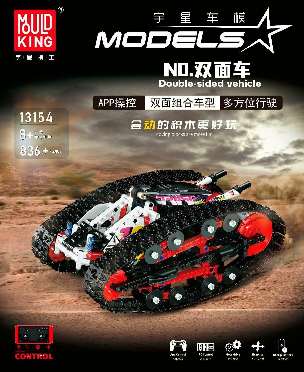 Купить Конструктор Mould King Technic 13154 Вездеход-трансформер с ДУ Развивающий конструктор, 836 деталей