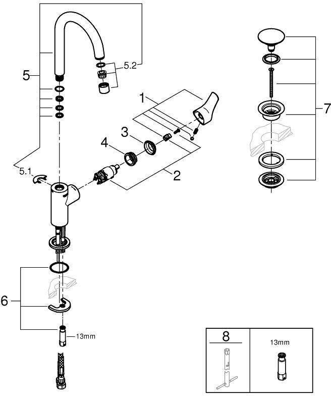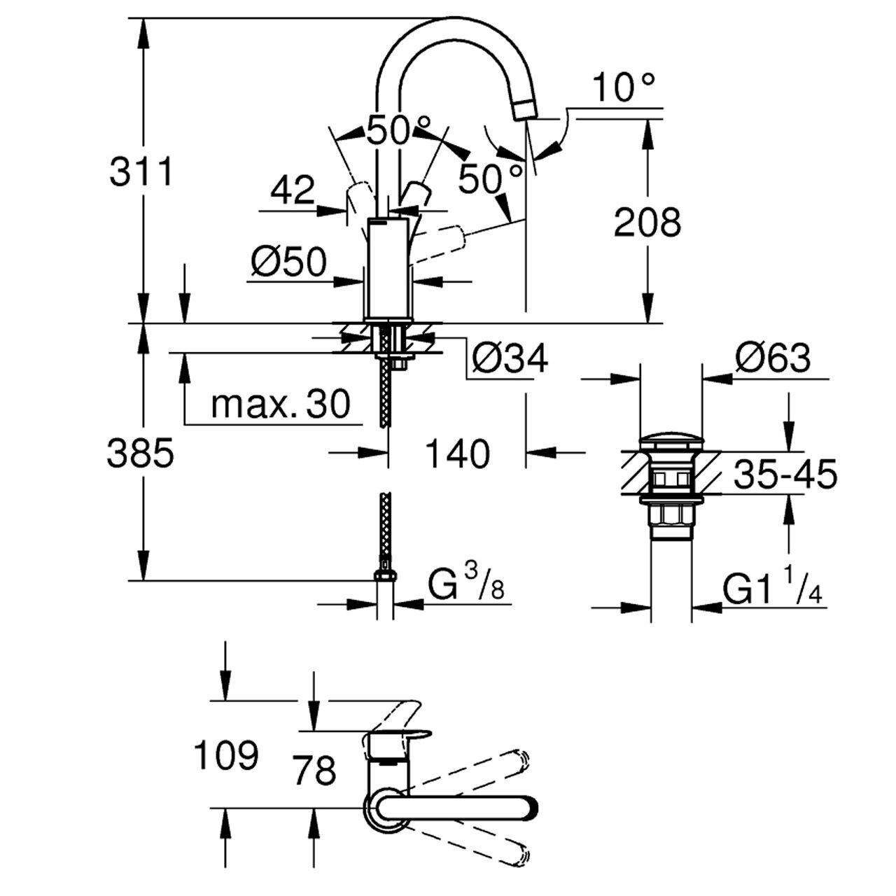 Смеситель для раковины GROHE Eurosmart, L-Size, хром (23970003) интересное: