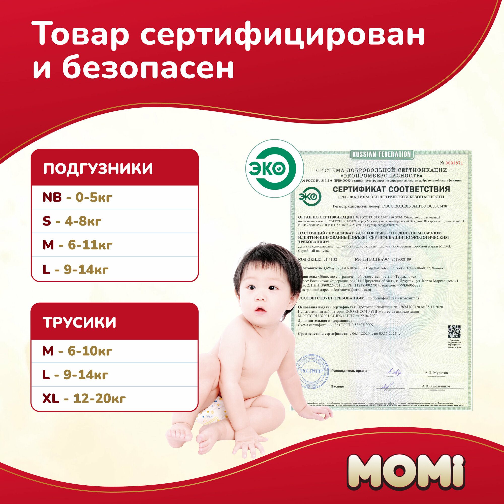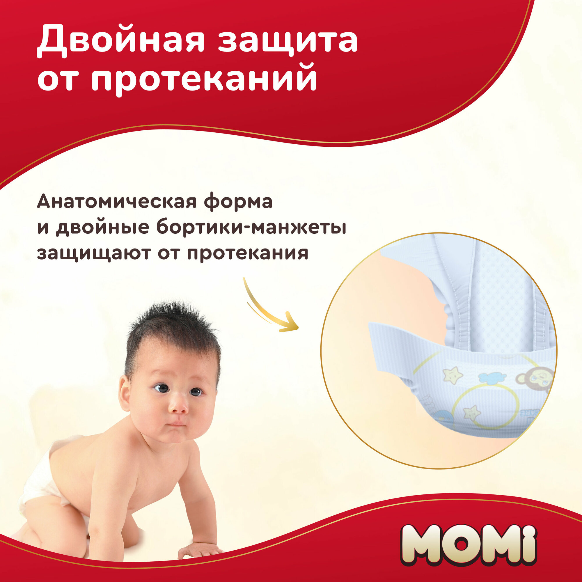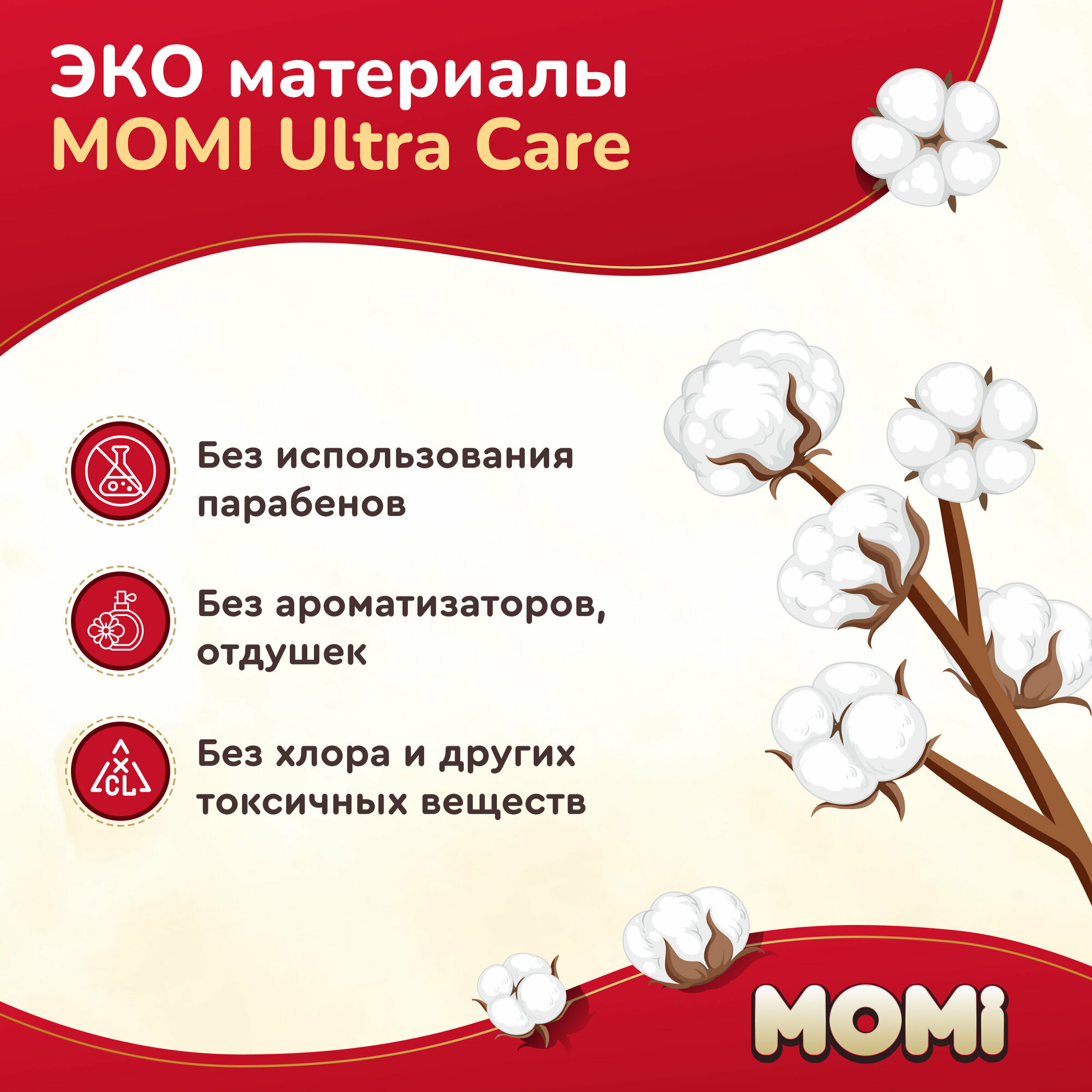 Подгузники MOMI Ultra Care, M (6-11 кг), 62 шт