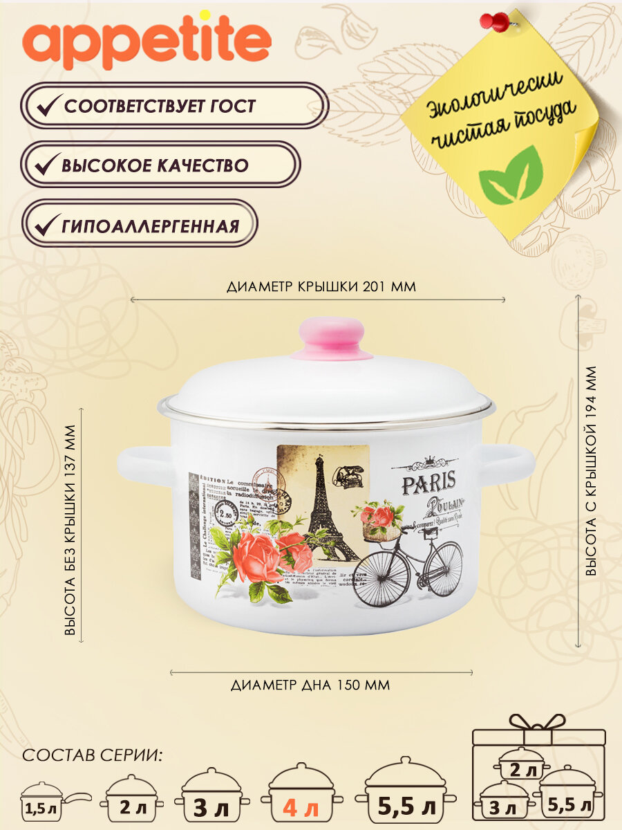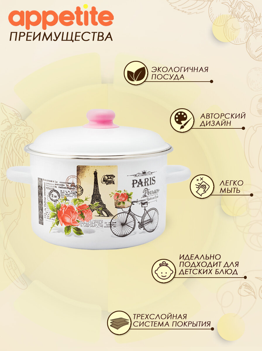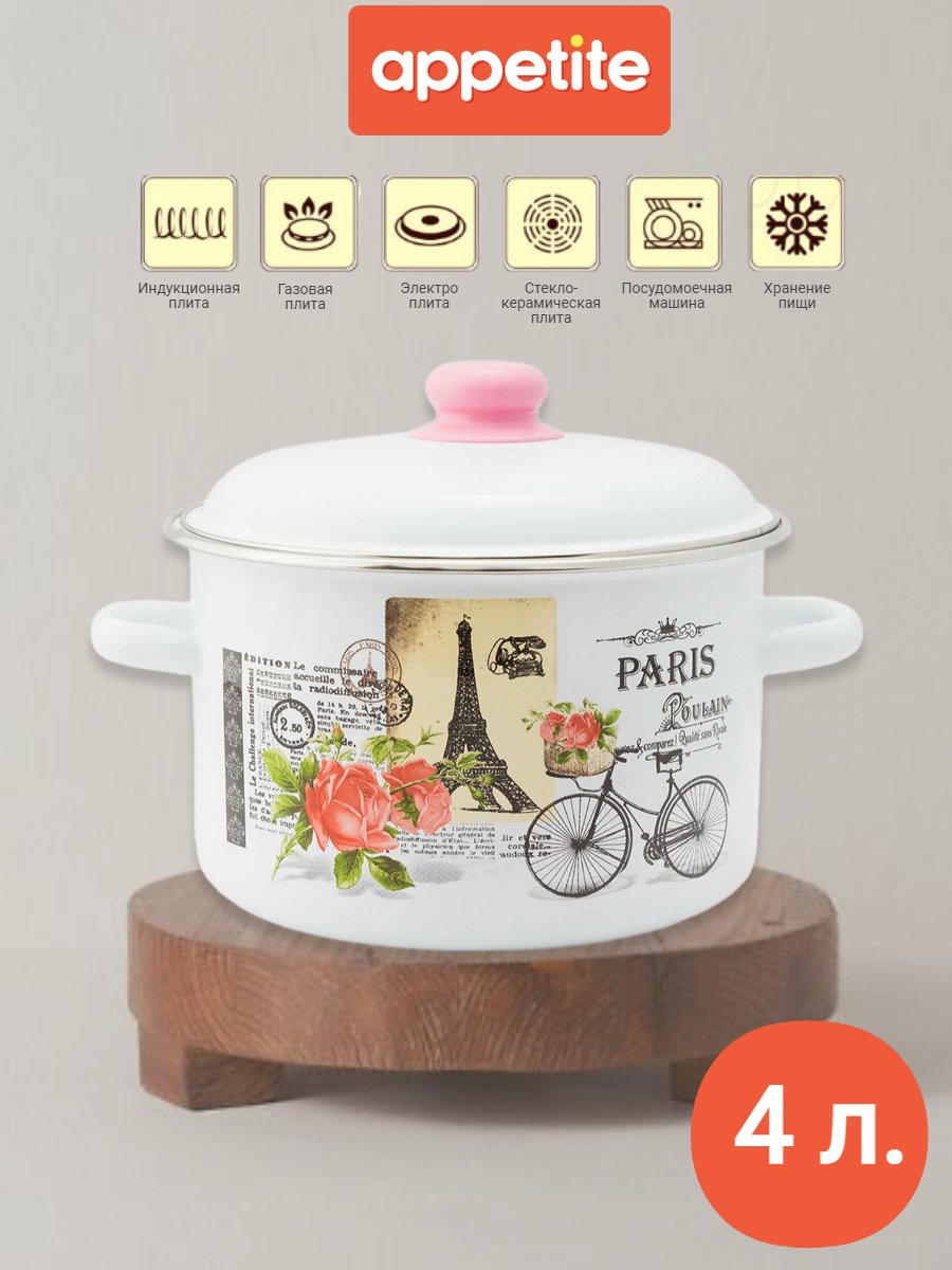 Кастрюля 4,0л Appetite Париж цил эмаль
