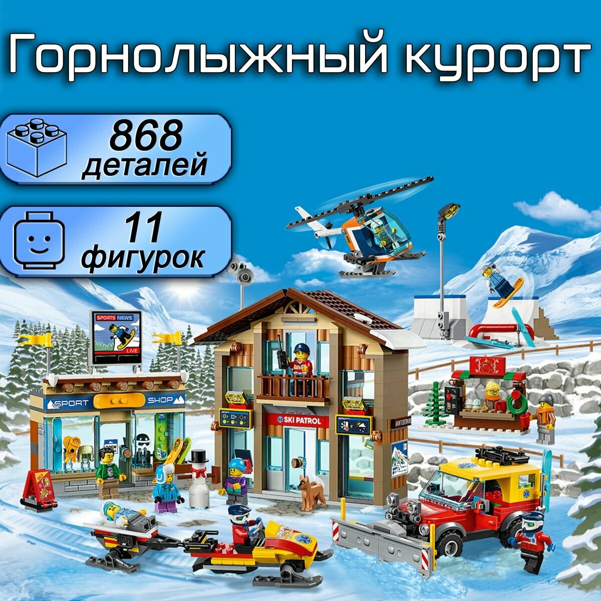 Конструктор Сити "Горнолыжный курорт", 868 деталей