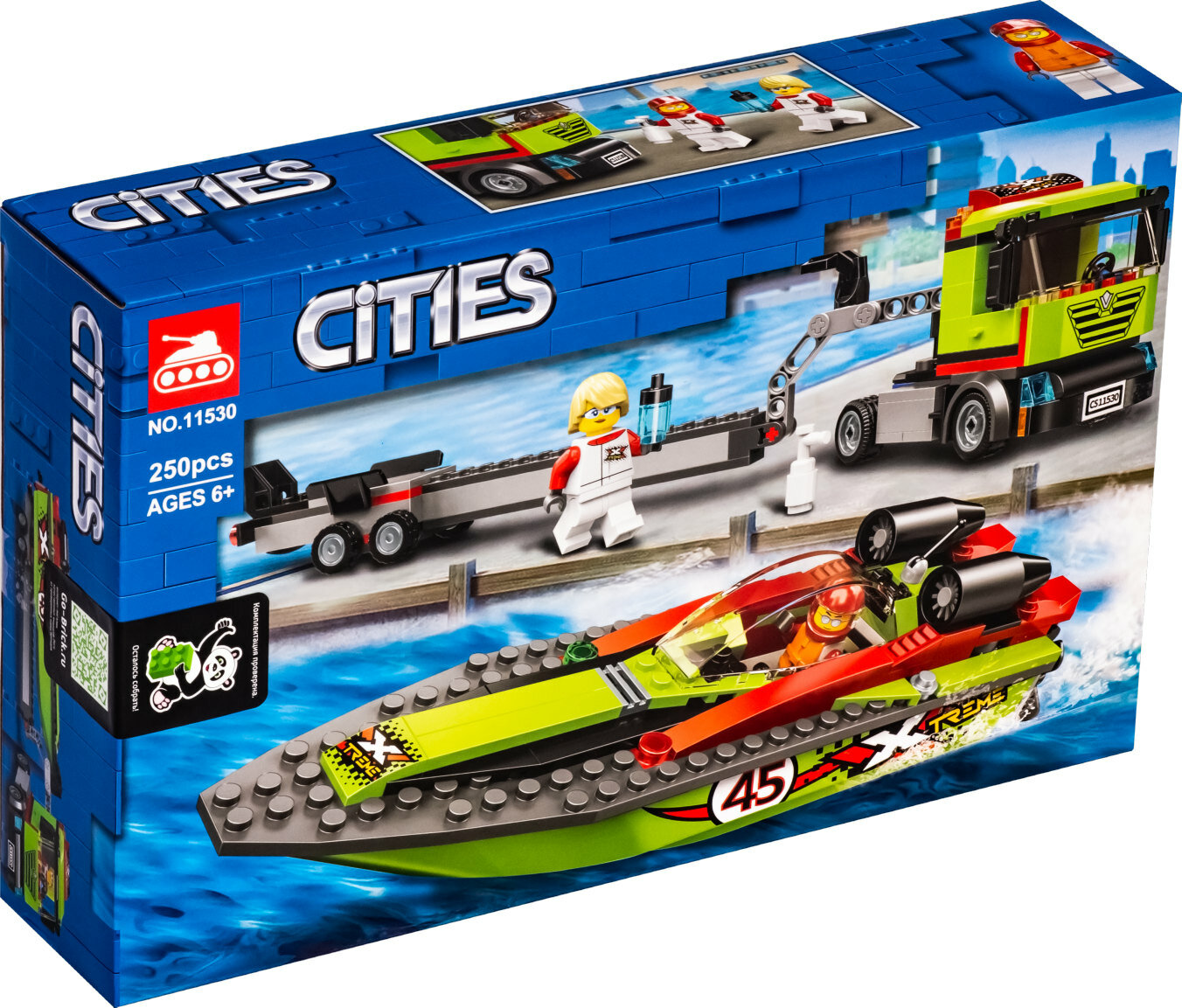 Ниже Вы можете прочитать отзывы на Конструктор Сити "Транспортировщик скоростных катеров" 11530 Cities, 250 деталей., ознакомится с подробными характеристиками, посмотреть интересные обзоры и фотографии на Конструктор Сити "Транспортировщик скоростных катеров" 11530 Cities, 250 деталей..