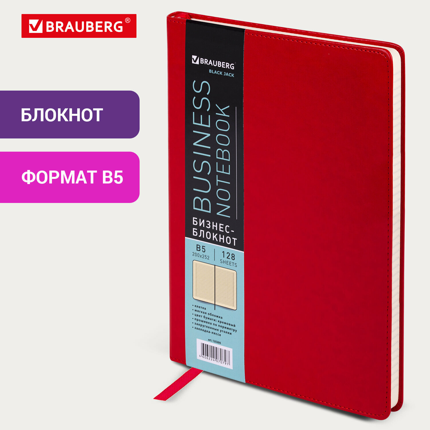 Блокнот большой формат (200х252мм) В5, BRAUBERG Income, кожзам, 128л, клетка, красный, 125205