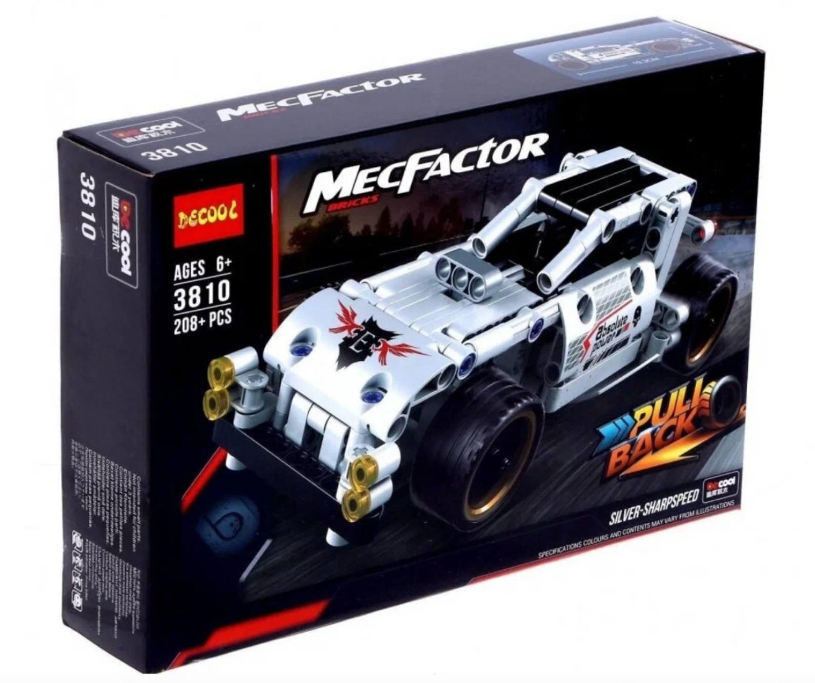 Конструктор "Гоночный автомобиль с инерционным механизмом" DeCool Technic MecFactor Silver Sharpspeed 208 деталей (модель 3810)