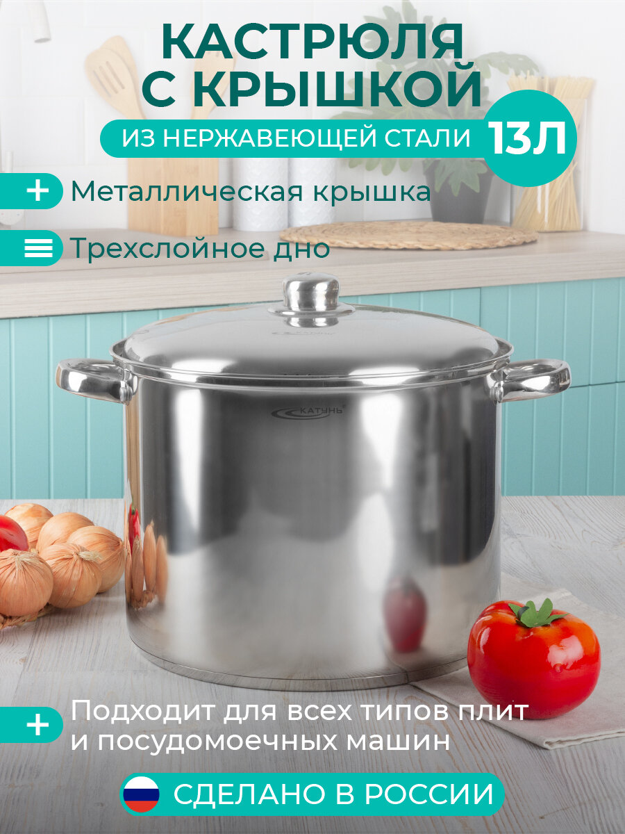 СохранитьКастрюля нержавеющая сталь, 13 л, с крышкой, крышка нержавеющая сталь, Катунь, Гретта, KT04-D-130, индукция интересное: