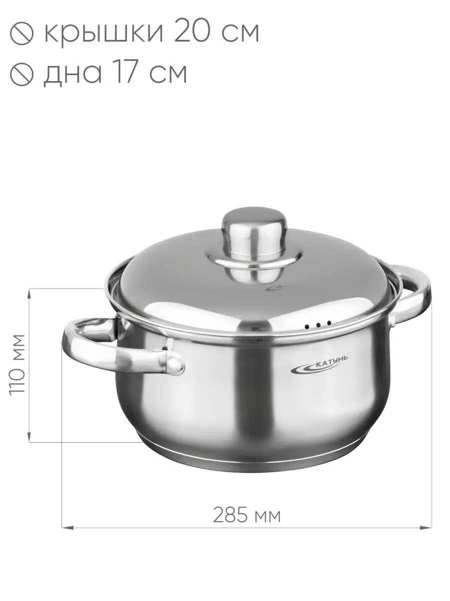 Кастрюля 3,4 л катунь, гретта, КТ04-D-35М, нерж. сталь, зеркальная полировка