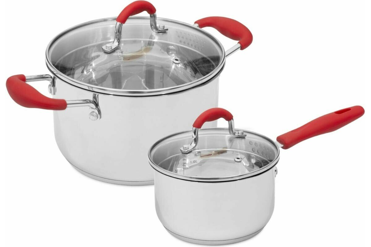 Набор посуды из нержавеющей стали FANCY 4пр.: ковш 1.7л + кастрюля 3.3л,ATTRIBUTE