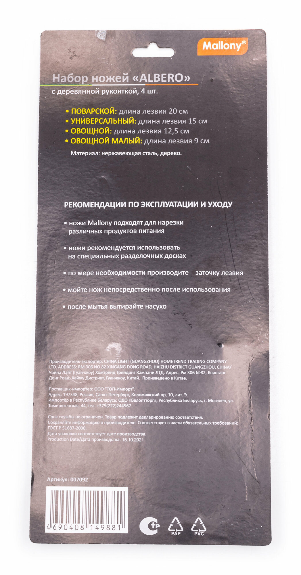 Нож с деревянной рукояткой ALBERO, набор 4шт/уп, универсальный, 7092 Mallony (арт. 772546)