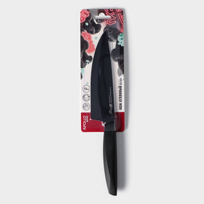 нож APOLLO Genio Nero Steel 15см кухонный нерж.сталь с антибакт.покр., пластик