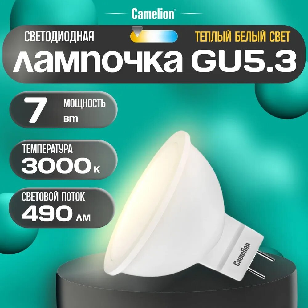 Купить Лампа светодиодная GU5.3 Camelion Софит, 7Вт, 3000К, лампочка 1 шт. 11656