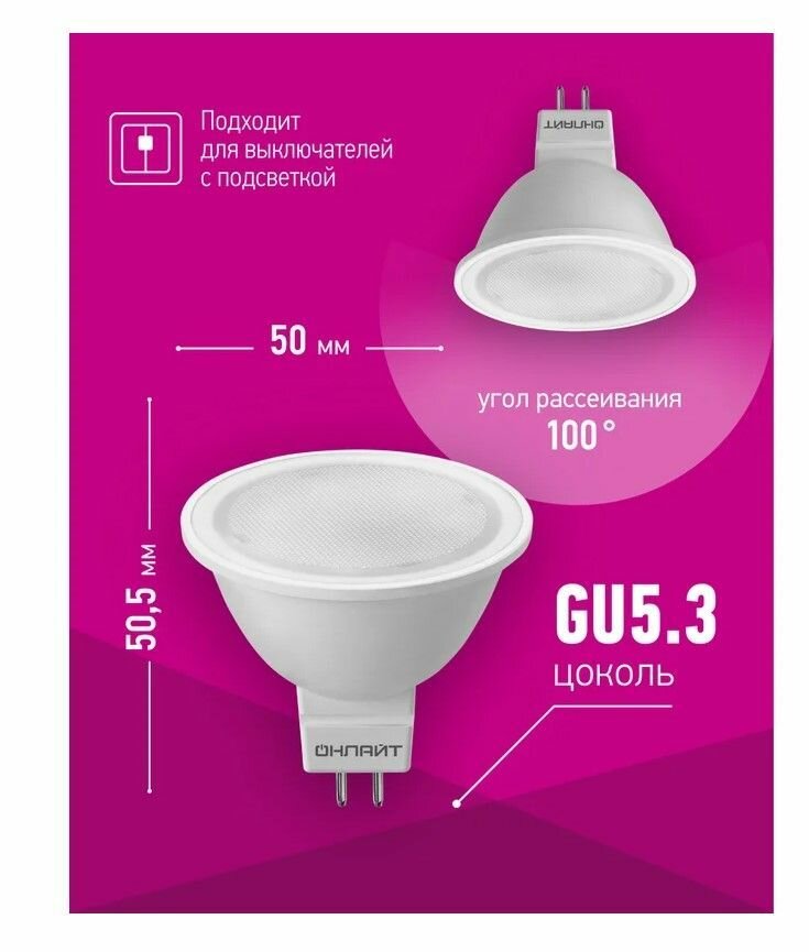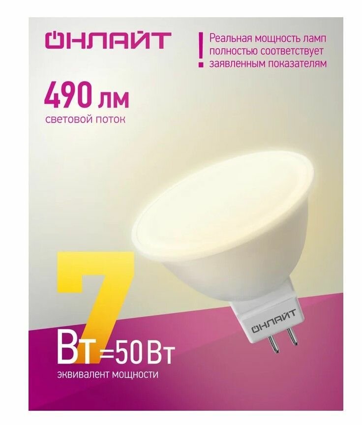 Светодиодная LED лампа Онлайт GU5.3 7W (Вт) 3000K 460lm 50x50 176-264V OLL-MR16-7-230-3K-GU5.3 71640