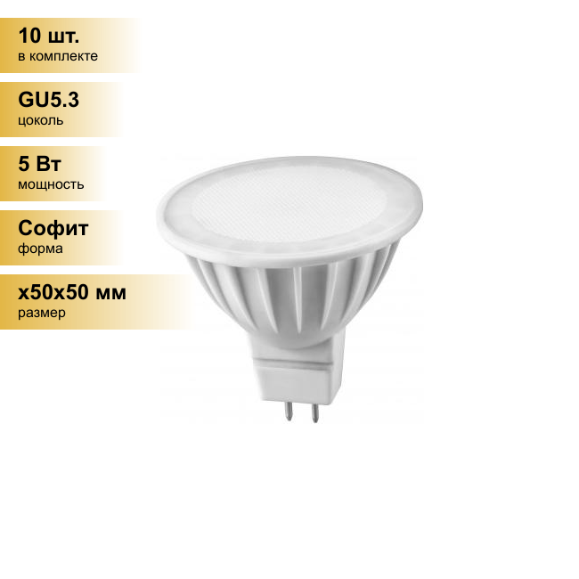(10 шт.) Светодиодная лампочка онлайт MR16 GU5.3 220V 5W(350Lm) 3000K 2K 50x50 матов. ОLL-MR16-5-230-3K-GU5.3 71637 Нейтральный белый. Цоколь GU5.3