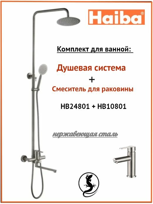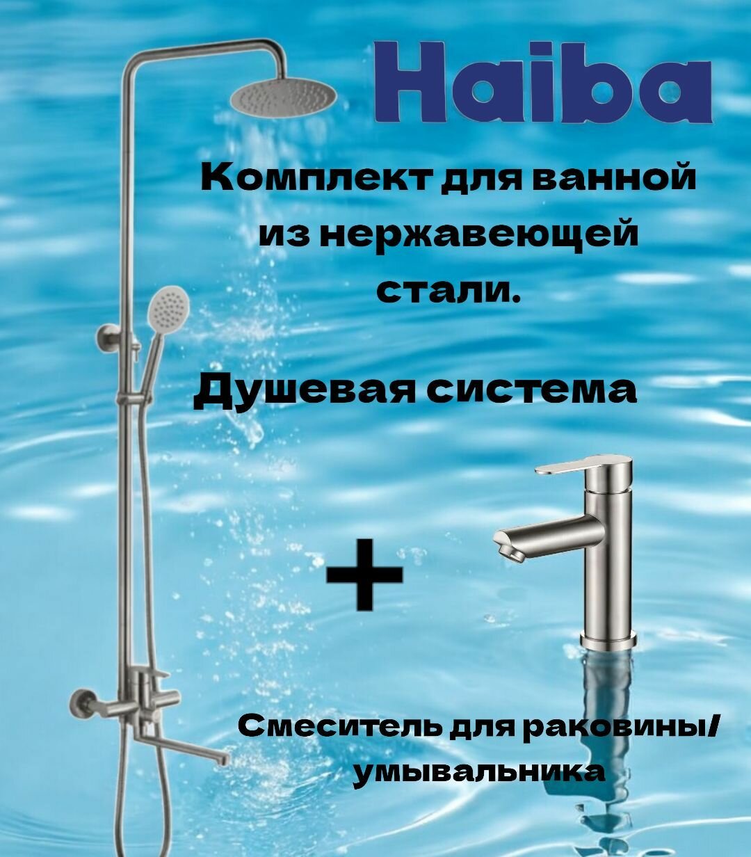 Купить Душевая система+ смеситель для раковины HAIBA HB24801+ HB10801 нержавеющая сталь.
