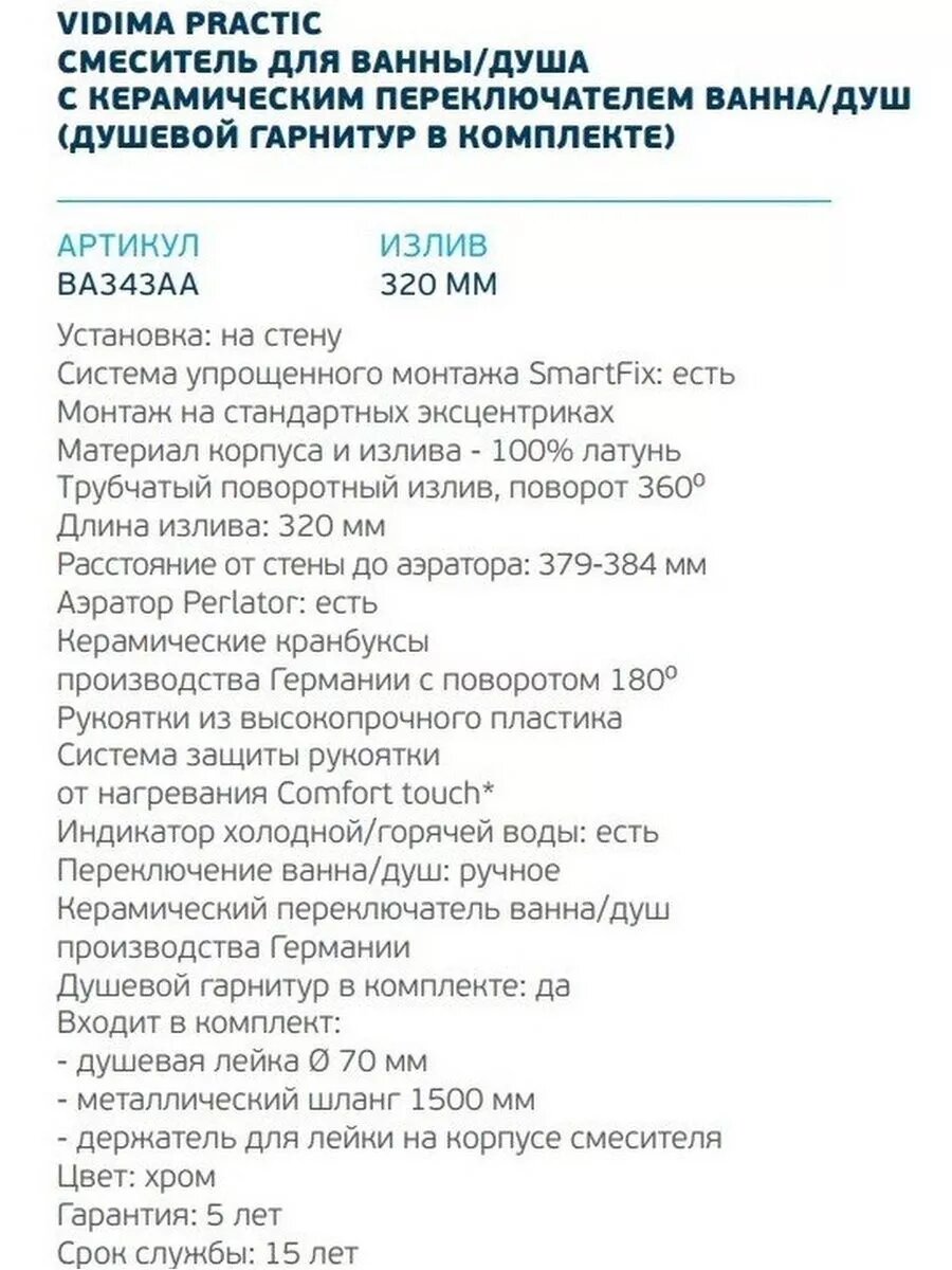 Смеситель для ванны с душем VIDIMA практик (BA343AA)