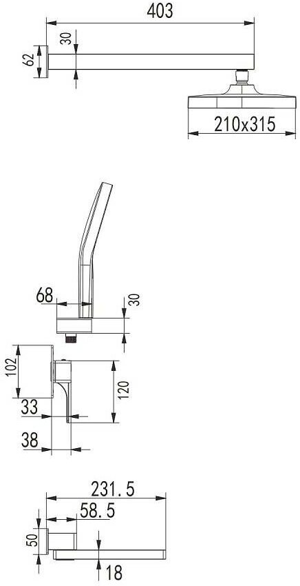 | Дополнительная информация | шланг металлический; поверхность матовая: верхний душ 275х225 мм |