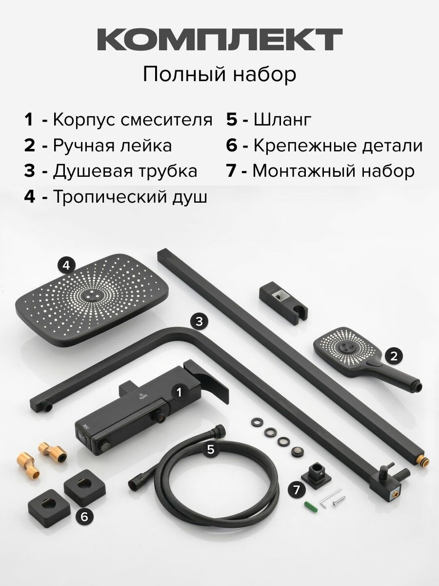 ROSE Душевая система ROSE R1036H черный матовый