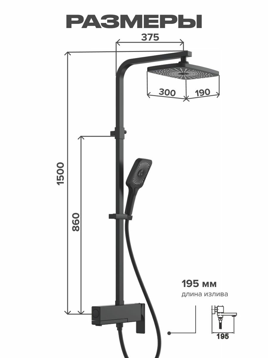 Душевая система с термостатом Rose R3536H, черный
