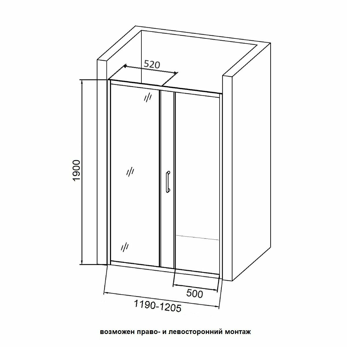 Душевая дверь Orange E02-120TCR в нишу, 120х190