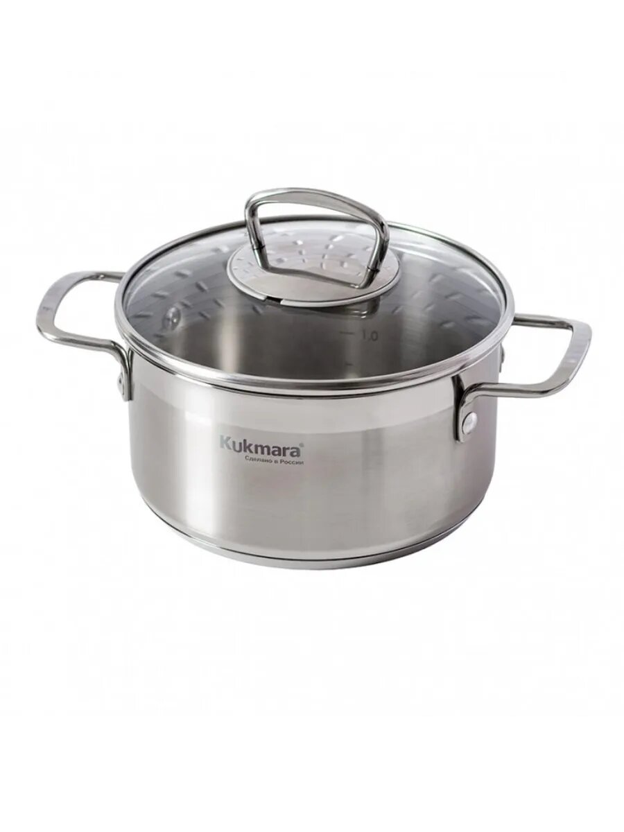 Кастрюля Kukmara Orion 1,0 литр, нержавеющая сталь, стеклянная крышка 14 см