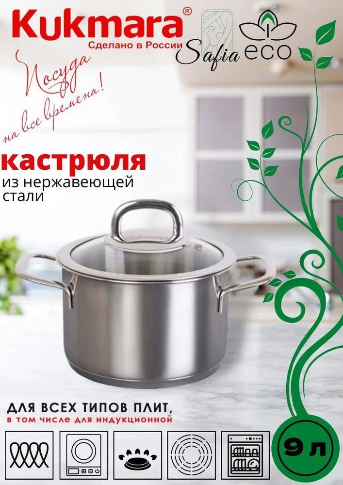 Кастрюля 9 л KUKMARA SAFIA, SF-CA9028G, нерж. сталь, зеркальная полировка