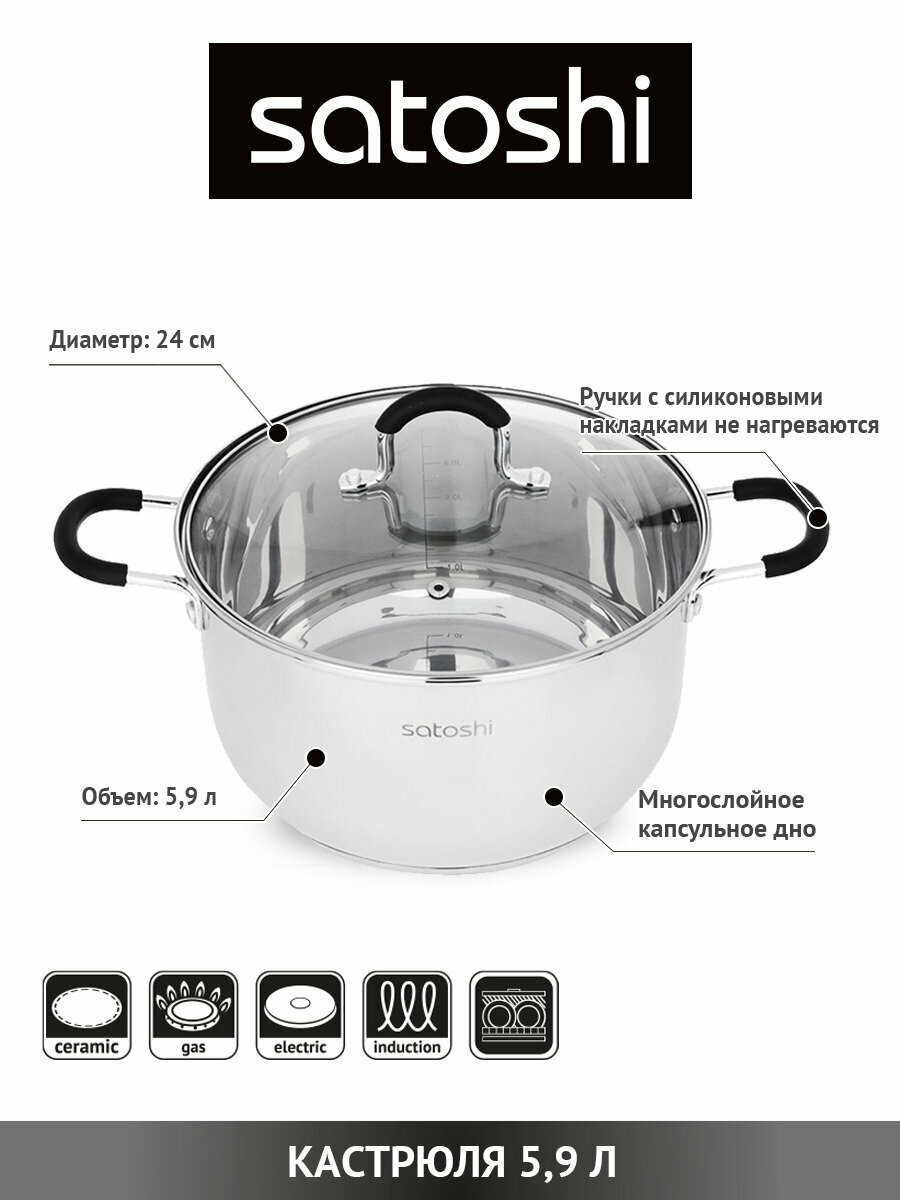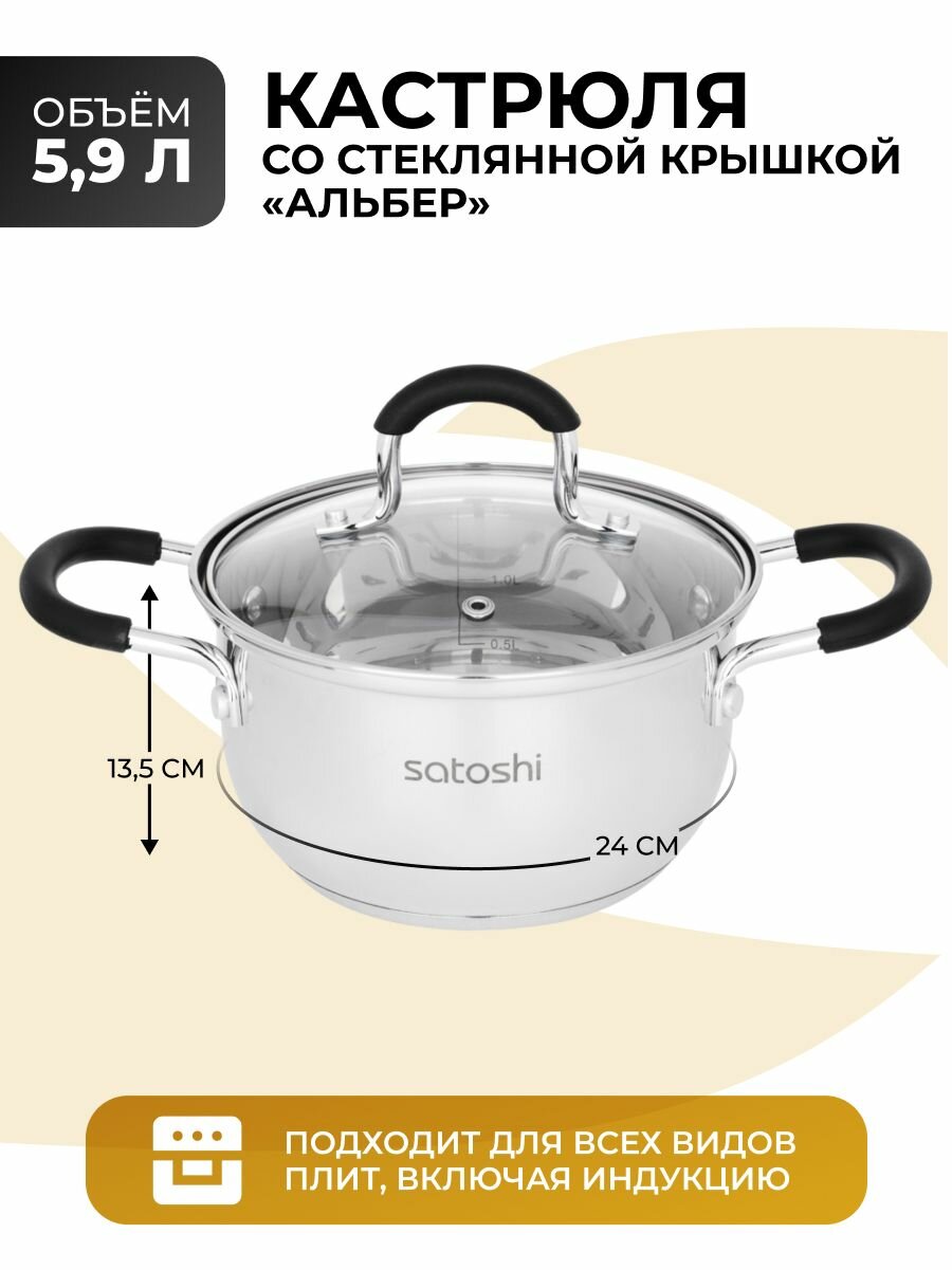 SATOSHI Альбер Кастрюля 24х13,5см, 5,9л, со стекл. крышкой, индукция