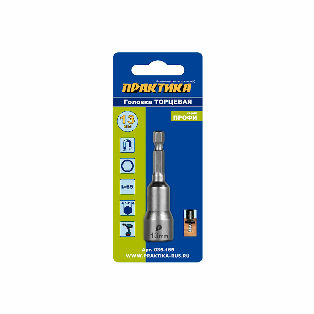 ПРАКТИКА Головка магнитная Н13, хвостовик HEX 1/4, в блистере 035-165