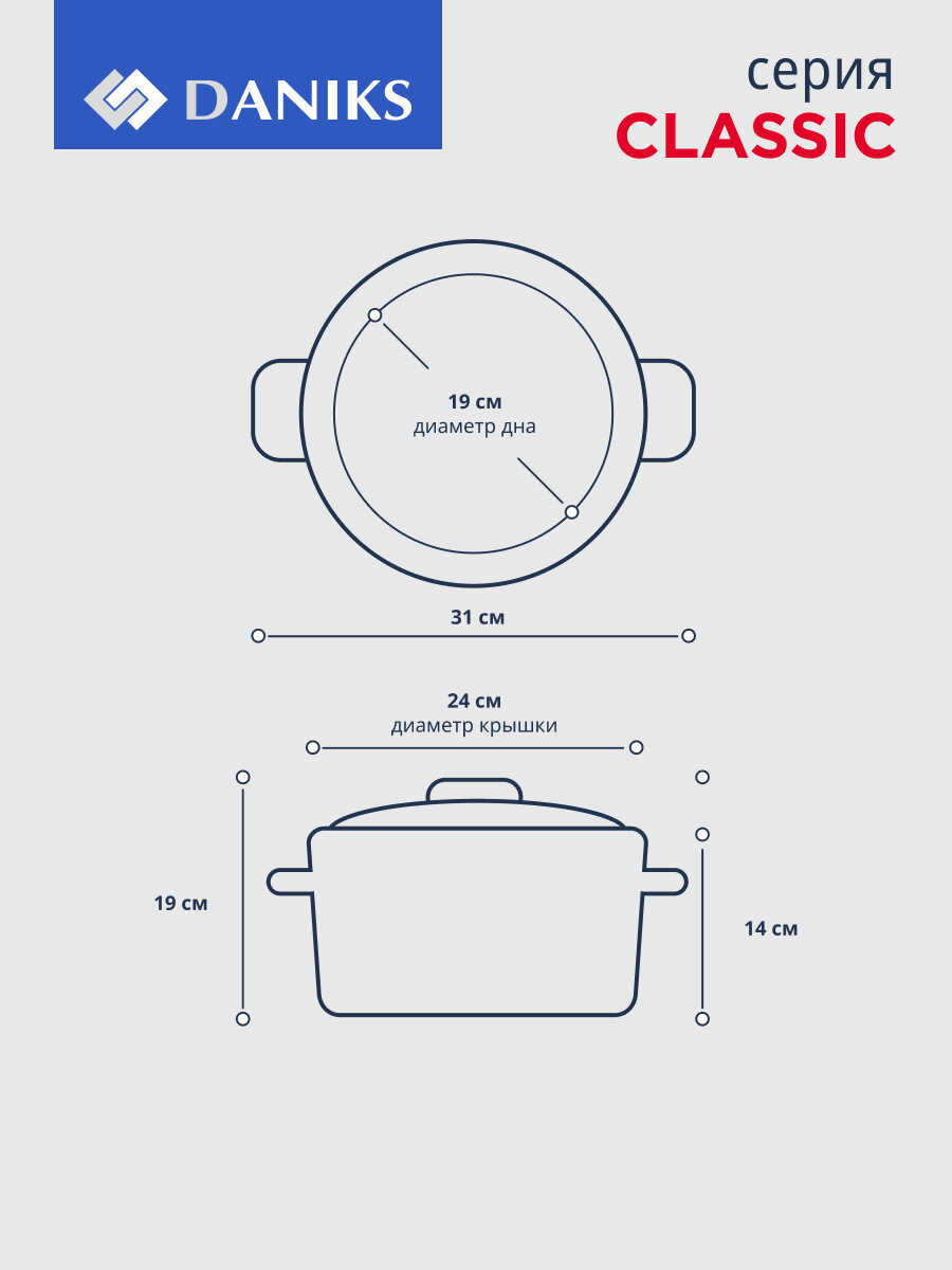 Кастрюля Daniks Классика SD-24 6.5л