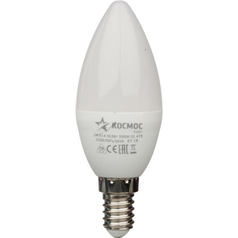 Купить Светодиодная лампа Космос, 10.5 Вт, E14, 3000 K, свеча, LED10.5wCNE1430, теплый белый