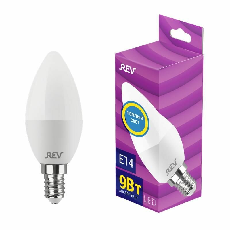 Лампа светодиодная Rev Е14 2700К 9 Вт 180-240 В свеча матовая