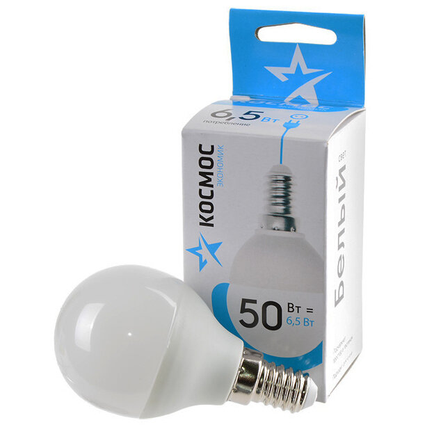 Ниже Вы можете прочитать отзывы на Светодиодная лампа Космос, 6.5 Вт, E14, 4500 K, шар, LED6.5wGL45E1445, нейтральный белый, ознакомится с подробными характеристиками, посмотреть интересные обзоры и фотографии на Светодиодная лампа Космос, 6.5 Вт, E14, 4500 K, шар, LED6.5wGL45E1445, нейтральный белый.