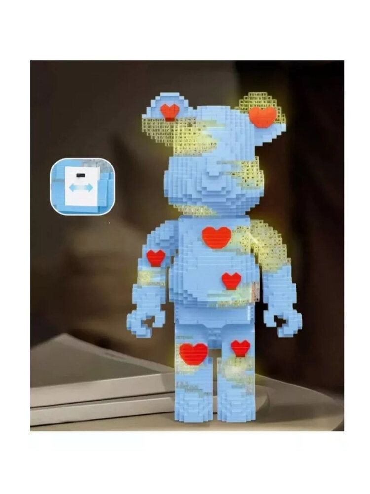 Купить Конструктор "Голубой светящийся коллекционный медведь с сердечком" из миниблоков 2630 деталей
