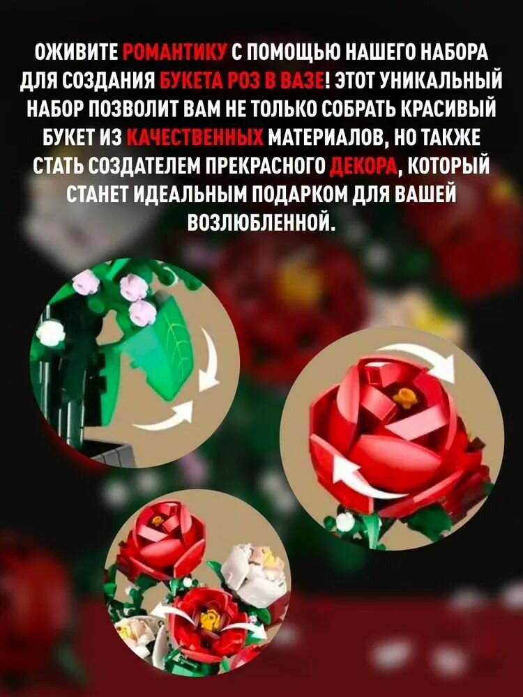 Купить Конструктор для девочки / Букет Роз В Вазе, 878 деталей