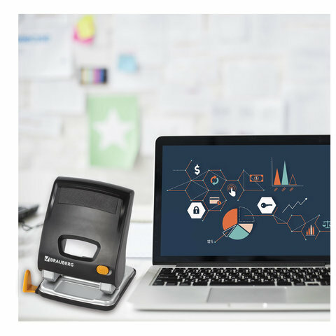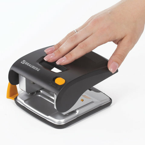 Дырокол BRAUBERG "Leistung", энергосберегающий, большой, на 30 листов, черный
