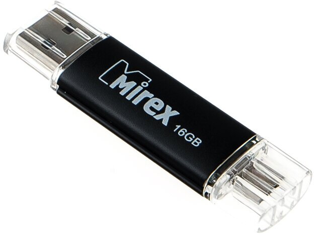 Флешка Mirex SMART BLACK, 16 Гб, USB2.0, USB/microUSB, чт до 25 Мб/с, зап до 15 Мб/с, черная Mirex 1