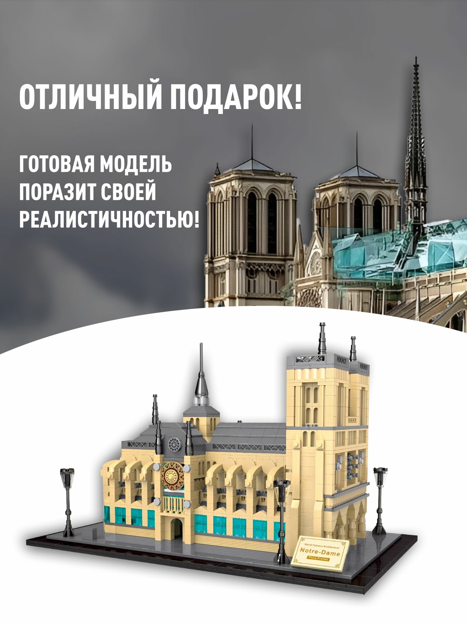 СохранитьКонструктор Собор Нотр-Дам-де-Пари, 806 / 2304 дет интересное: