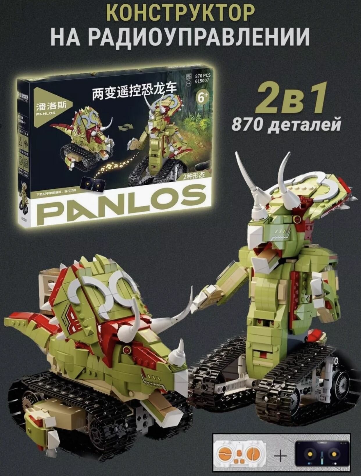 Ниже Вы можете прочитать отзывы на Конструктор Робот-динозавр трансформер 2 в 1 на пульте управления 870 деталей, ознакомится с подробными характеристиками, посмотреть интересные обзоры и фотографии на Конструктор Робот-динозавр трансформер 2 в 1 на пульте управления 870 деталей.