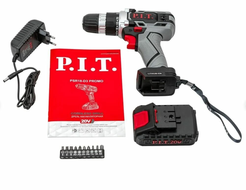 Аккумуляторный шуруповерт ударный P.I.T. PSR18-D4 Promo, 20 В, 1 аккумулятор и зарядное устройство в комплекте