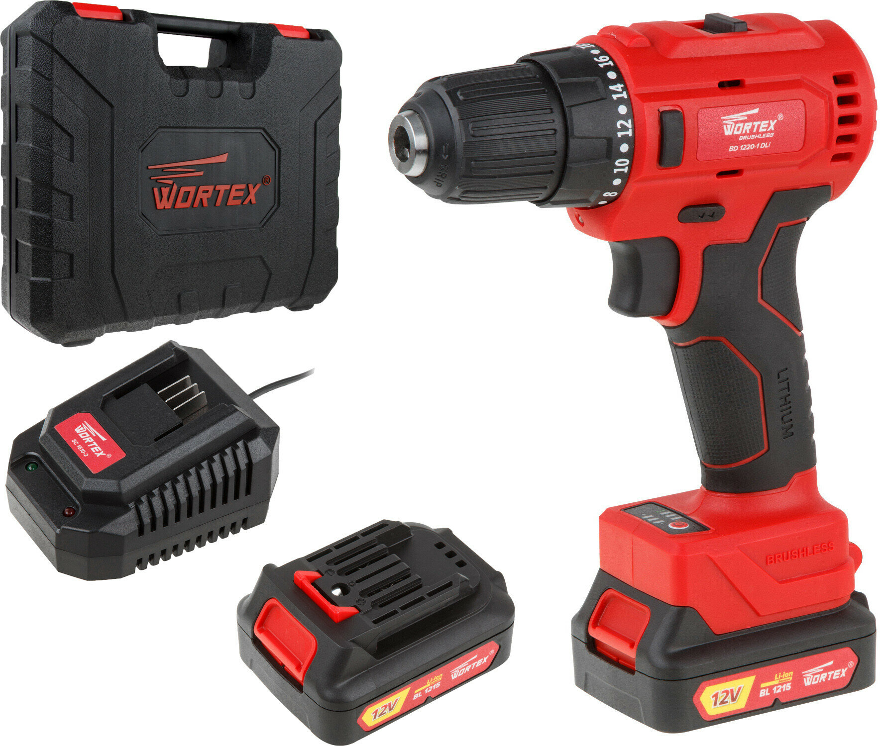 Дрель-шуруповерт Wortex аккумуляторный BD 1220-1 DLi в чемодане