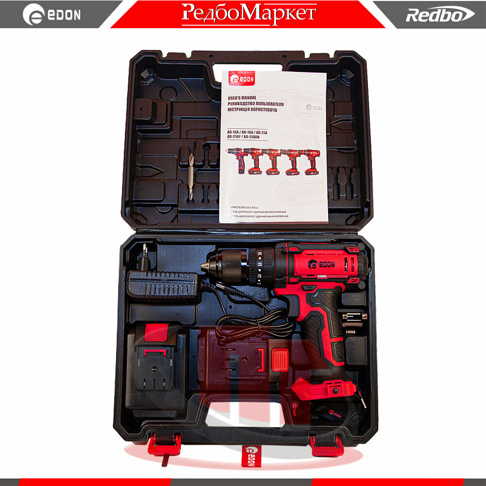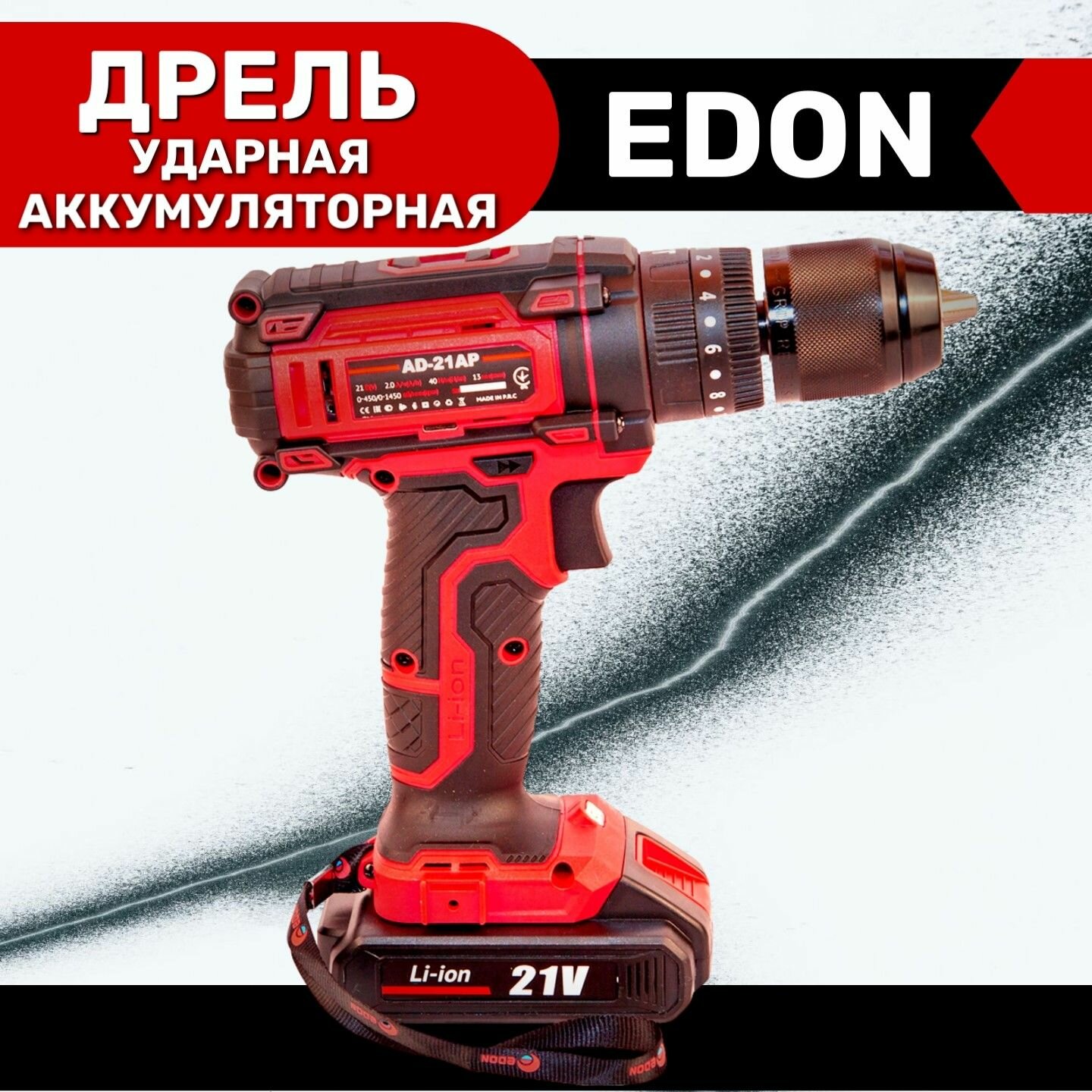 Дрель-шуруповерт аккумуляторная Edon AD-21AP, удар, 21В