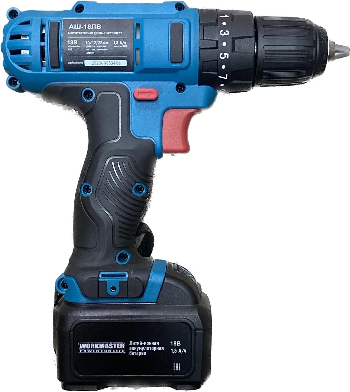 Аккумуляторная дрель-шуруповерт АШ-18ЛВ Workmaster, шт Workmaster
