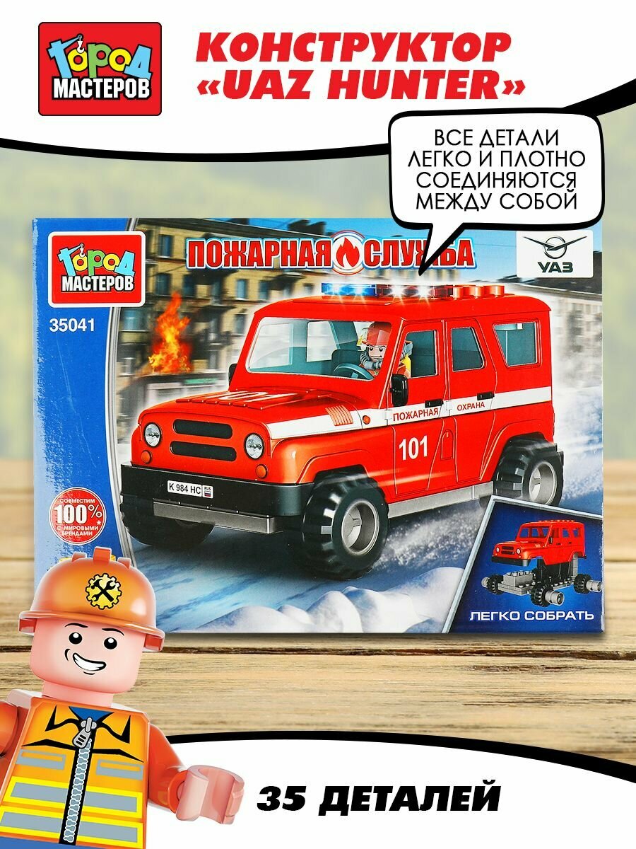 Конструктор UAZ HUNTER пожарная служба, 35 дет. (легко собрать) Город мастеров