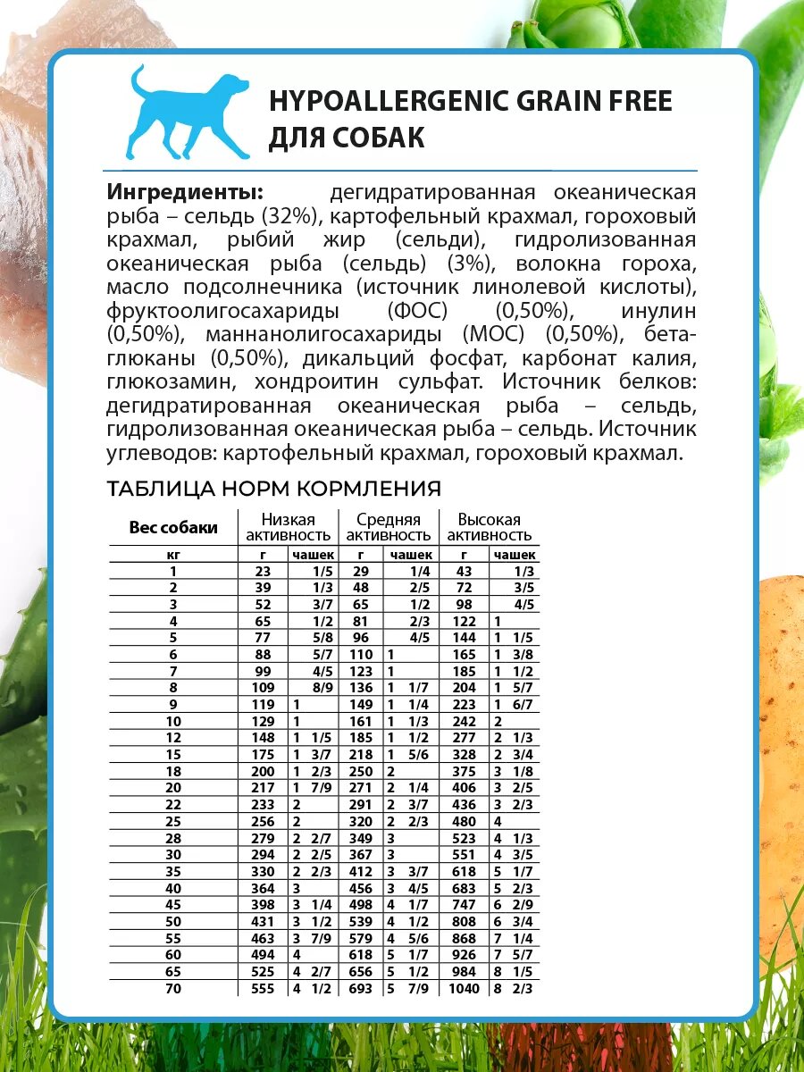 | Пищевая ценность | сырой протеин – 28,00%, сырой жир – 15,00%, сырая клетчатка – 2,00%, сырая зола – 6,50%, Кальций – 1,40%, Фосфор – 0,90%, Омега-6 – 1,40%, Омега-3 – 0,32%, глюкозамин – 400 мг/кг; хондроитин сульфат – 350 мг/кг |